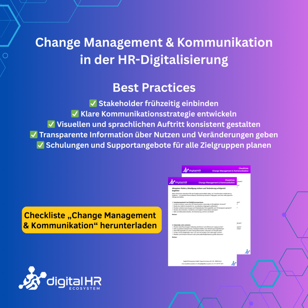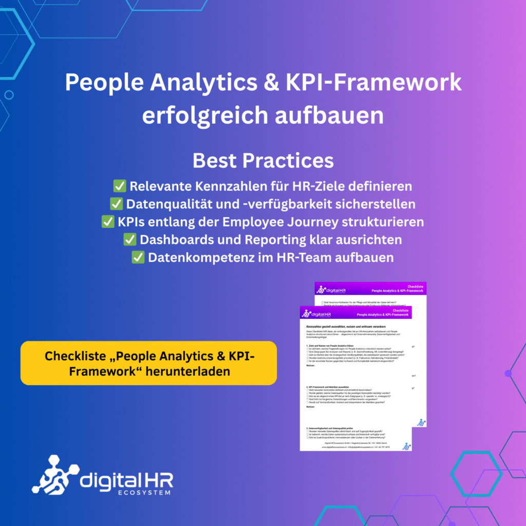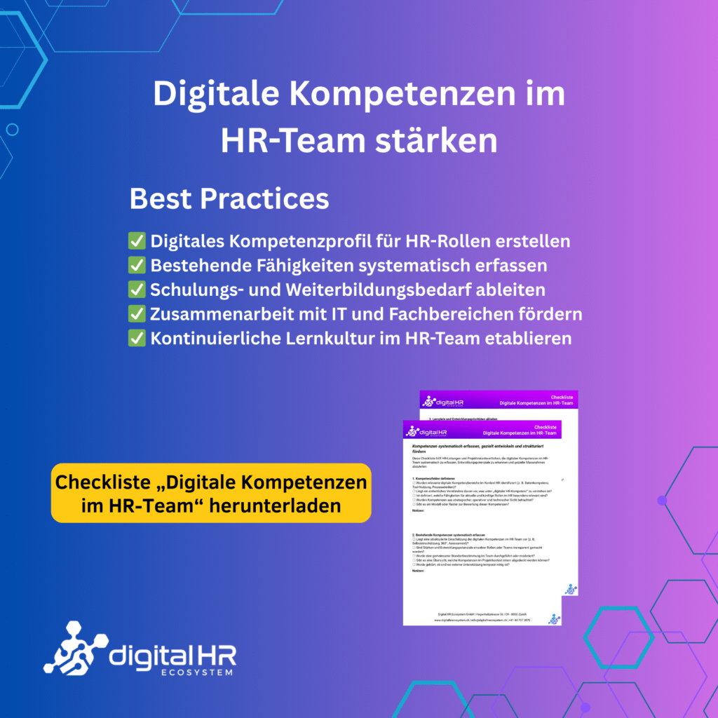 Nachhaltige HR-Digitalisierung erfordert mehr als neue Systeme – sie verlangt digitale Kompetenzen im HR-Team. Oftmals sind Know-how-Lücken ein Grund, warum Projekte ins Stocken geraten oder Tools nicht effektiv genutzt werden. In HR-Teams fehlen häufig Skills in Datenanalyse, Prozessdigitalisierung oder Systemadministration. Unsere Checkliste „Digitale Kompetenzen im HR-Team“ hilft, den Status quo sichtbar zu machen, Kompetenzlücken zu […]